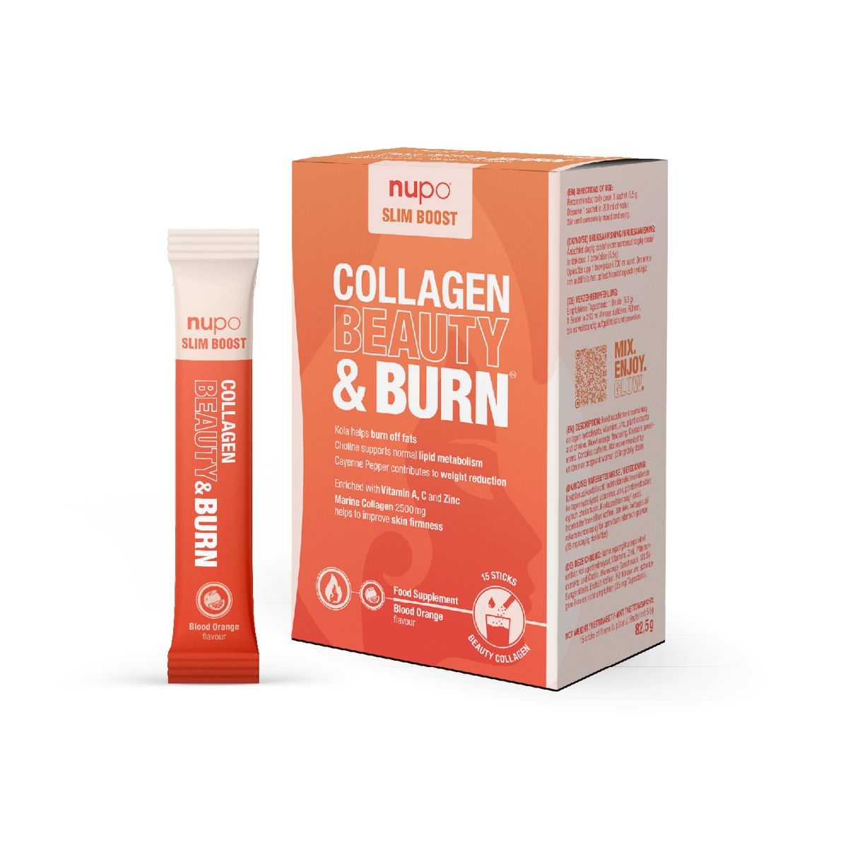 Slim Boost Collagen Beauty & Burn Collagen Beauty & Burn is a potent blend of vitamins, minerals, and plant extracts.Taking a Slim Boost Collagen Beauty & Burn, combining marine collagen and a fat burner, can offer multiple benefits:Slim Boost Collagen Beauty & Burn enhances weight loss with plant extracts like Kola, Guarana, and Cayenne pepper. Plus, it delivers 2500mg of marine collagen, promoting skin firmness