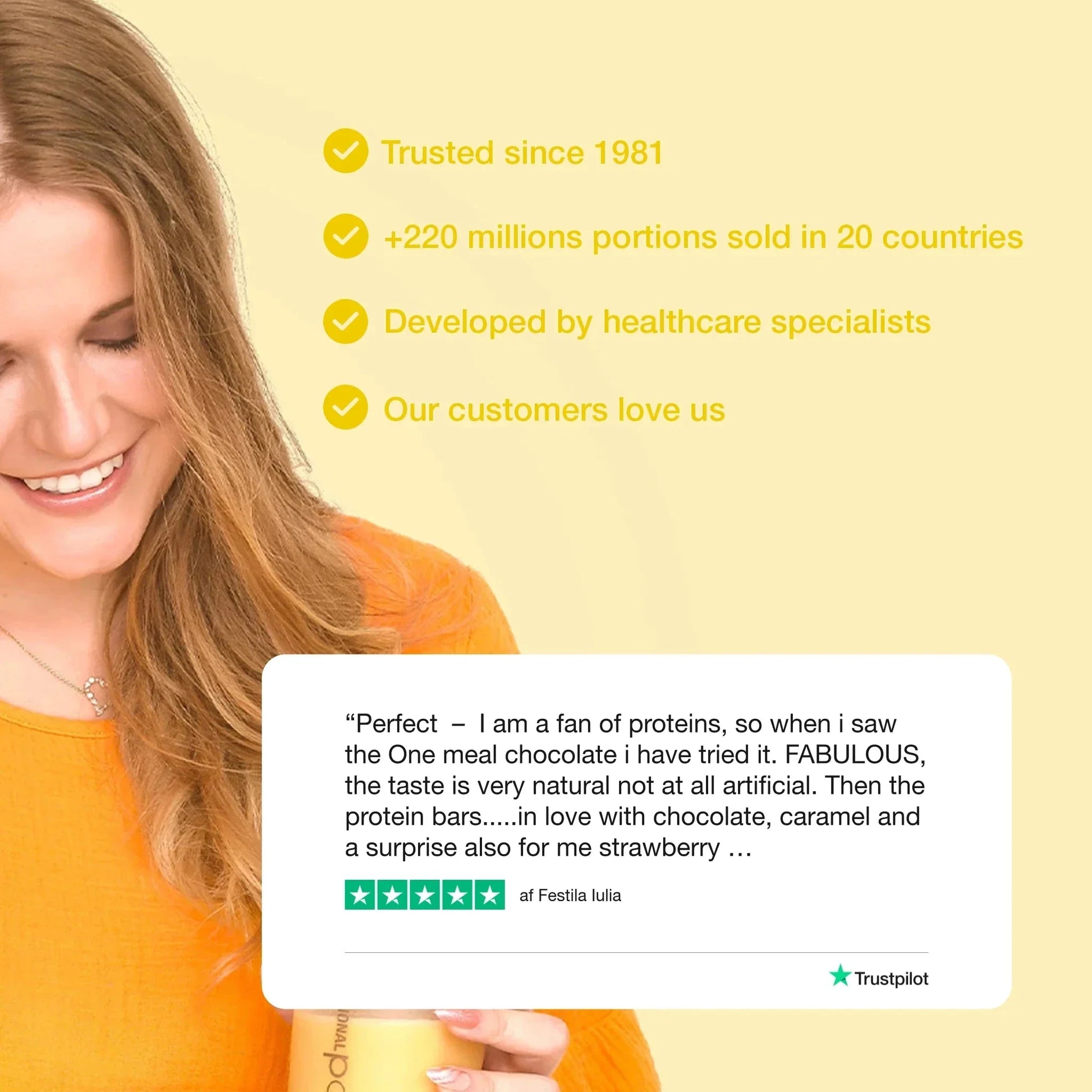 In connection with diet, however, it is important to think about your daily calorie intake, and such you should be aware that adding One Meal as a snack or in-between meal, you will add approx. 200 kcal. to your daily calorie intake.